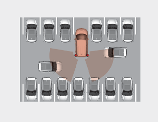 Rear Cross-Traffic Collision Warning uses radar sensors to monitor the approaching cross traffic from the left and right side