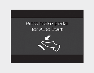 If you move the transmission lever from N to D (manual mode) or R without depressing the brake pedal after stopping engine automatically, the engine does not restart automatically and a warning chime alarms. When this happens, press the brake pedal for auto start.