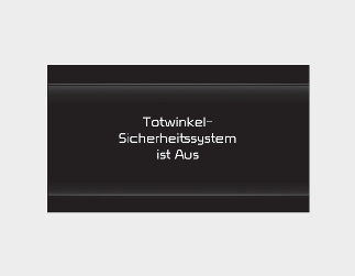 Wenn der Motor bei ausgeschaltetem System neu gestartet wird, erscheint auf dem Kombiinstrument die Meldung „Totwinkel-Sicherheitssystem ist ausgeschaltet“.