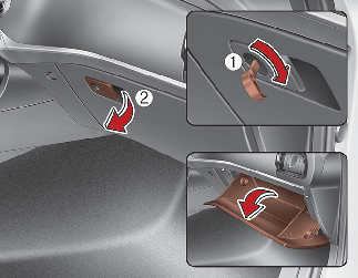 Avaa hansikaslokero vetämällä kahvaa (2), ja lokero avautuu automaattisesti. Sulje hansikaslokeron luukku käytön jälkeen.