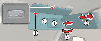Pull down and slide the mirror cover (4) to use the vanity mirror.