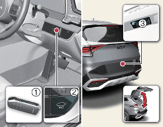 Press the power tailgate open/close button inside the vehicle or with the smart key for 1 second. The power tailgate opens with a warning sound.