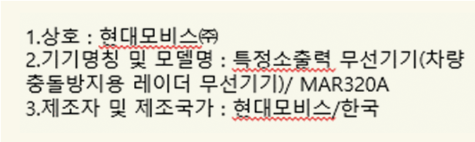 The radio frequency components (Rear Corner Radar) complies (Type A):