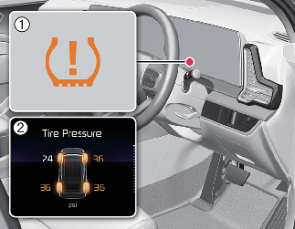 If tyre pressure is not displayed when the vehicle is stopped, "Drive to display" message displays. After driving, check the tyre pressure.