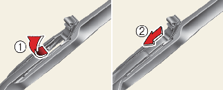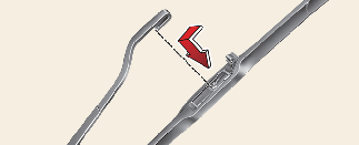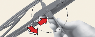 Lift the wiper blade clip up. Pull down the blade assembly and remove it.