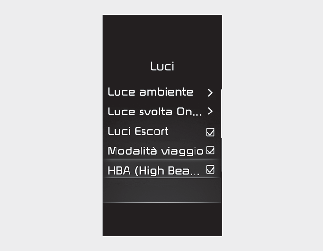 Dopo aver selezionato 'HBA (High Beam Assist)' nel menu Impostazioni, il sistema di illuminazione frontale intelligente funzionerà seguendo la procedura riportata di seguito.