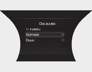 Quando il veicolo viene consegnato, la temporizzazione dell'avviso è impostata su 'Normal' (Normale). Se si modifica la temporizzazione dell'avviso, è possibile che cambino anche quelle di altre funzioni di assistenza al guidatore.