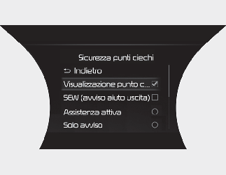 Se il motore viene riavviato, l'Assistenza collisione punto cieco manterrà l'ultima impostazione.