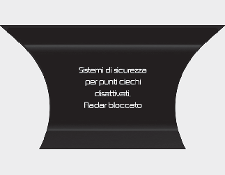 Se questo si verifica, apparirà il messaggio di avviso ‘Blind-spot safety systems disabled. Radar blocked’ (Sistema di sicurezza dei punti ciechi viene disabilitato. Radar bloccato) sul quadro strumenti.