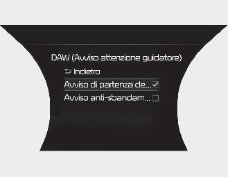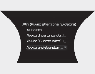 L'Avviso attenzione guidatore è impostato in posizione OFF, quando il veicolo viene prelevato dalla fabbrica.