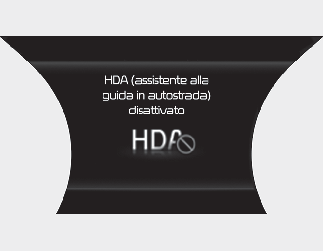 L'avviso mani staccate dal volante appare quando la funzione rileva che le mani del conducente non sono sul volante mentre il sistema HDA è in funzione.
