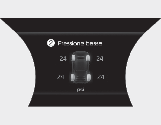 Spia luminosa posizione pneumatico con bassa pressione (Indicata sul display LCD)