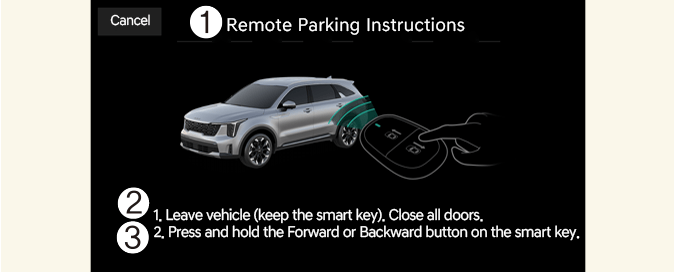 La funzione remota funzionerà solo quando la chiave intelligente si trova a meno di 4 m (13 ft.) dal veicolo. Se non vi è alcun movimento del veicolo anche quando si preme il pulsante Avanti o Indietro sulla chiave intelligente, controllare la distanza dal veicolo e premere di nuovo il pulsante.