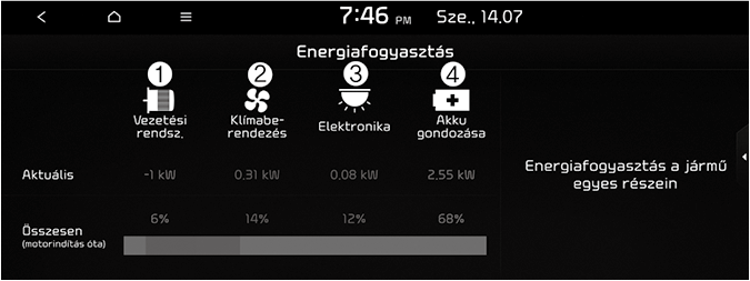 Ellenőrizheti a jármű összes rendszerének energiafogyasztását.