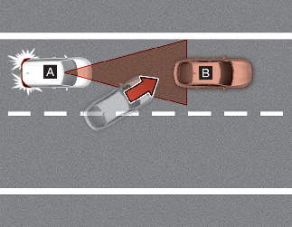 [A]: Az Ön járműve, [B]: Elöl haladó jármű