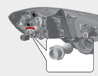 Remove the bulb from the socket by pressing it in and rotating it counterclockwise until the tabs on the bulb align with the slots in the socket.