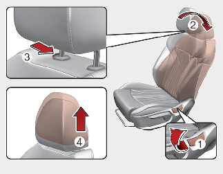 إذا أملت ظهر المقعد نحو الأمام أثناء رفع مسند الرأس ووسادة المقعد، فقد يلامس مسند الرأس حاجب الشمس أو أجزاء أخرى بالسيارة.