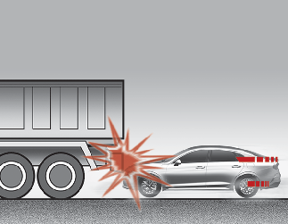وفي الغالب، قبيل حدوث التصادم، سيقوم السائق بعمل فرملة شديدة. ستؤدي هذه الفرملة الشديدة إلى خفض الجزء الأمامي من السيارة مما قد يؤدي إلى "دخول مقدمة السيارة" تحت مركبة أخرى ذات خُلوص أرضي أعلى (أعلى ارتفاعًا عن الأرض). قد لا تنتفخ الوسائد الهوائية في حالة "دخول مقدمة سيارتك تحت مركبة أخرى" لأن قوى التباطؤ التي ستكتشفها المستشعرات بفعل مثل هذا التصادم قد تستبدل بمثل هذا التصادم.