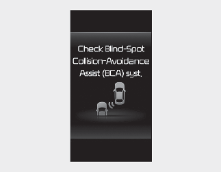 في حالة وجود مشكلة في مساعد تجنب الاصطدام في المنطقة المحجوبة (BCA)، تظهر رسالة تحذيرية. كما ستتوقف الوظيفة تلقائيًا. نوصي بفحص الوظيفة لدى أحد شركاء خدمة/ وكلاء Kia المعتمدين.
