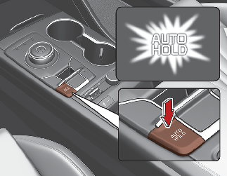 في حالة الضغط على دواسة الوقود مع وجود ناقل الحركة المزود بتقنية التعشيق سلكيًا في الوضع D (قيادة) أو الوضع R (رجوع) أو وضع ناقل الحركة اليدوي، سيتم تحرير زر Auto Hold (التوقف التلقائي) تلقائيًا وتبدأ السيارة في التحرك. يتغير المؤشر من الأخضر إلى الأبيض مشيرًا إلى وجود التوقف التلقائي في وضع الاستعداد وتحرير فرامل الانتظار الإلكترونية.