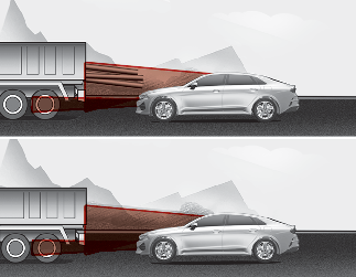 في حالة إذا كانت السيارة بالأمام سيارة كبيرة الحجم أو مقطورة كبيرة جدًا لدرجة ألا يكتشفها نظام التعرف بالكاميرا (على سبيل المثال مقطورة، أو جرار وما إلى ذلك).