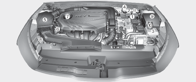 * قد تختلف غرفة المحرك الفعلية في السيارة عن الرسم التوضيحي.