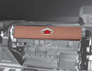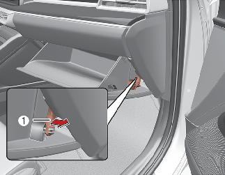 ادفع في كلا جانبي صندوق القفازات حسبما هو موضح. ويعمل هذا على ضمان أن مسامير السداد لصندوق القفازات ستتحرر من موقع تثبيتها