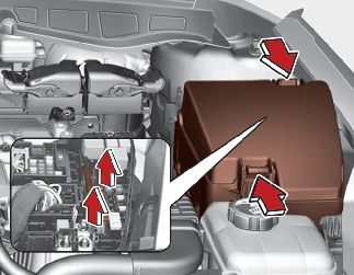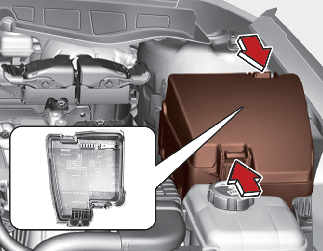 بعد التحقق من لوحة المصاهر في حجرة المحرك، ركّب غطاء لوحة المصهر بإحكام من خلال صوت النقر المسموع.