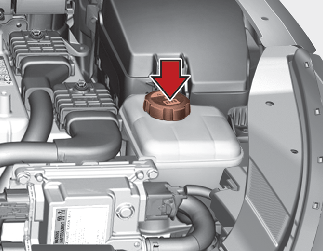 أوقف تشغيل السيارة وانتظر حتى يبرد المحرك. توخ الحذر الشديد عند فك غطاء سائل تبريد المحرك و/ أو غطاء تبريد العاكس. قم بلف منشفة رقيقة حوله، ثم أدره عكس اتجاه عقارب الساعة ببطء حتى تصل إلى أول توقف. ارجع للخلف أثناء تحرير الضغط من نظام التبريد. وبعد التأكد من تحرير الضغط بالكامل، اضغط لأسفل على الغطاء باستخدام منشفة رقيقة وتابع إدارته في عكس اتجاه عقارب الساعة لفكه.