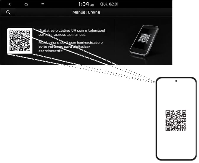 Ao digitalizar o código QR: Pressione [SETUP] > [Geral] > [Informações do sistema] > [Manual Online]. Digitalize o código QR, depois toque no URL do código para aceder a página da web.