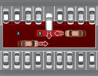 [B]: intervalo de funcionamento da Assistência de prevenção de colisão traseira