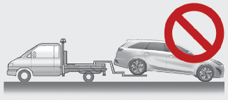 • Não reboque o veículo com equipamento de suspensão. Utilize equipamento de elevação das rodas ou uma plataforma.