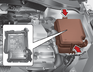 Conector de ligação de dados, Interruptor de perigo, Painel de instrumentos, Caixa do relé ICM (módulo de circuito integrado) (Relé de recolha/abertura dos espelhos retrovisores exteriores e da tampa do combustível), Luz automática e fotossensor, Interruptor da consola, Manípulo exterior da Smart Key para condutor/passageiro, Lâmpada da ficha do carregador, Bloco de junção do compartimento do motor (Relé de BLOQUEIO DO CARREGADOR, Relé de DESBLOQUEIO DO CARREGADOR) |