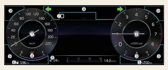 On inclines or curves, the fuel gauge pointer may fluctuate or the low fuel warning light may come on earlier than usual due to the movement of fuel in the tank.