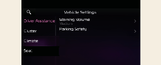 Do not operate the Vehicle settings whilst driving. This may cause distraction resulting in an accident.