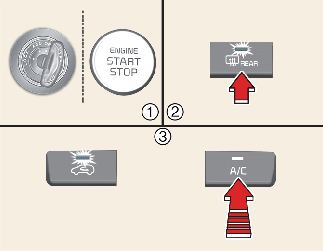 Within 10 seconds, press air intake button 5 times whilst pressing the air conditioner button (A/C).