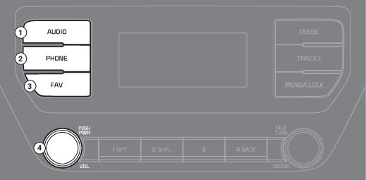 Whilst searching by turning the knob, press to select the current track/file (except for the Bluetooth audio mode).