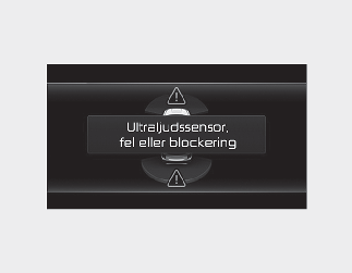 Sensorn är täckt av främmande material, t.ex. snö eller vatten (Parkeringsavståndsvarning Bakåt-Parkering fungerar normalt, så snart det främmande materialet har avlägsnats).