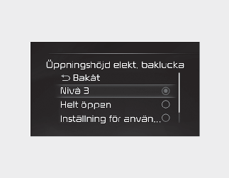 Bakluckans öppningshöjd kan justeras i inställningarna för instrumentklustret eller infotainmentsystemet.