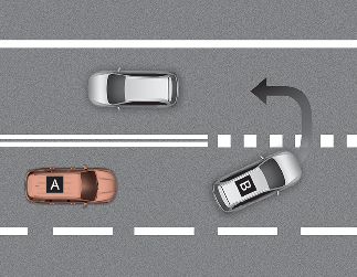 LVDA-systemet kanske inte fungerar korrekt om fordonet framför svänger skarpt, t.ex. för att svänga vänster eller höger eller göra en U-sväng.