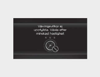 Meddelandet visas på LCD-skärmen när P-växeln väljs igen eller om växeln är överhettad.
