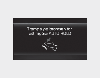 Om du inte trycker på bromspedalen när du frigör Auto Hold genom att trycka på strömbrytaren [AUTO HOLD], så kommer ett varningsljud låta och ett meddelande kommer att visas.