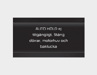 När du trycker på strömbrytaren [AUTO HOLD], om förardörren, bakluckan och motorhuven inte är stängda, kommer ett varningsljud att låta och ett meddelande kommer att visas på LCD-skärmen.