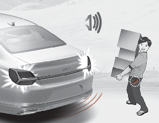 스마트 키를 휴대하고 트렁크 후방 감지 영역 약 50~100 cm 이내 접근하여 3초 이상 대기 시(비상경고등 및 경고음 작동)