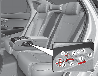 조절 스위치(3)를 이용하여 뒷좌석의 허리지지대를 조절할 수 있습니다.