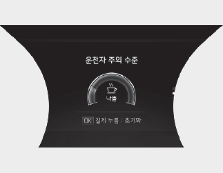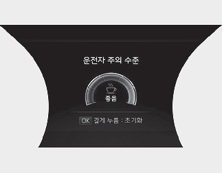 운전자 주의 수준이 1단계 미만으로 떨어지면 휴식 권유 문구가 표시되고 경고음이 울립니다.