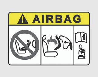 에어백의 위험을 상기하도록 에어백 경고 라벨이 부착되어 있습니다.