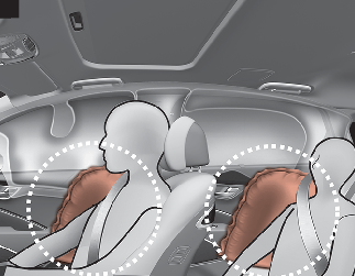 사이드 에어백은 앞좌석과 뒷좌석 바깥쪽에 내장되어 있습니다.