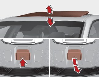 선루프 스위치를 위쪽으로 누르면 선루프 글라스가 틸트 상태로 열립니다.