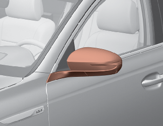 실외 미러 접이 버튼을 사용하여 실외 미러를 접었을 때는, 설정에서 실외 미러 자동 펼침 기능이 설정되었더라도 차량 파손을 방지하기 위해 미러가 펴지지 않습니다.